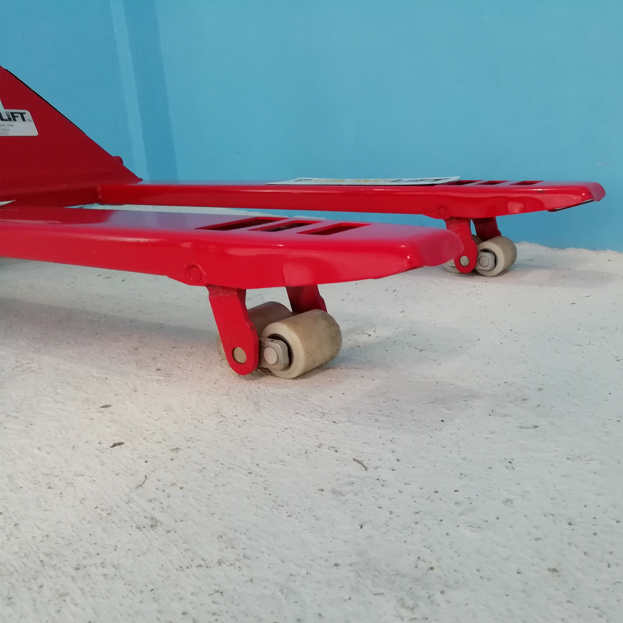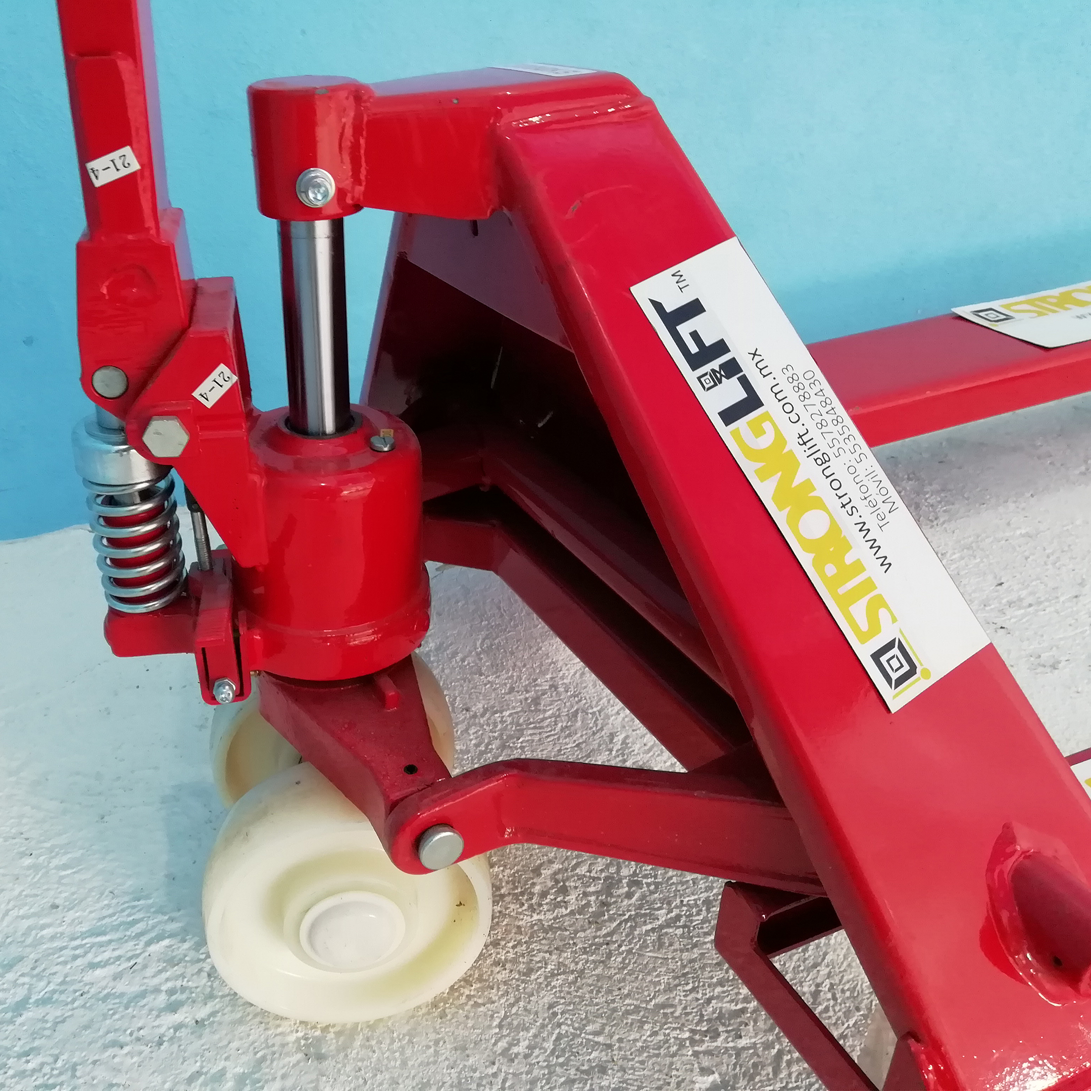 Patín Hidráulico perfil bajo 6.5 cms 3 ton. de capacidad llantas tandem nylamid horquillas reforzadas 27”x 48” x 2.55” x 6.89” de levante ruedas de 7” y tamden 2.5” hidráulico antigoteo control manual de 3 posiciones radio de giro 180°