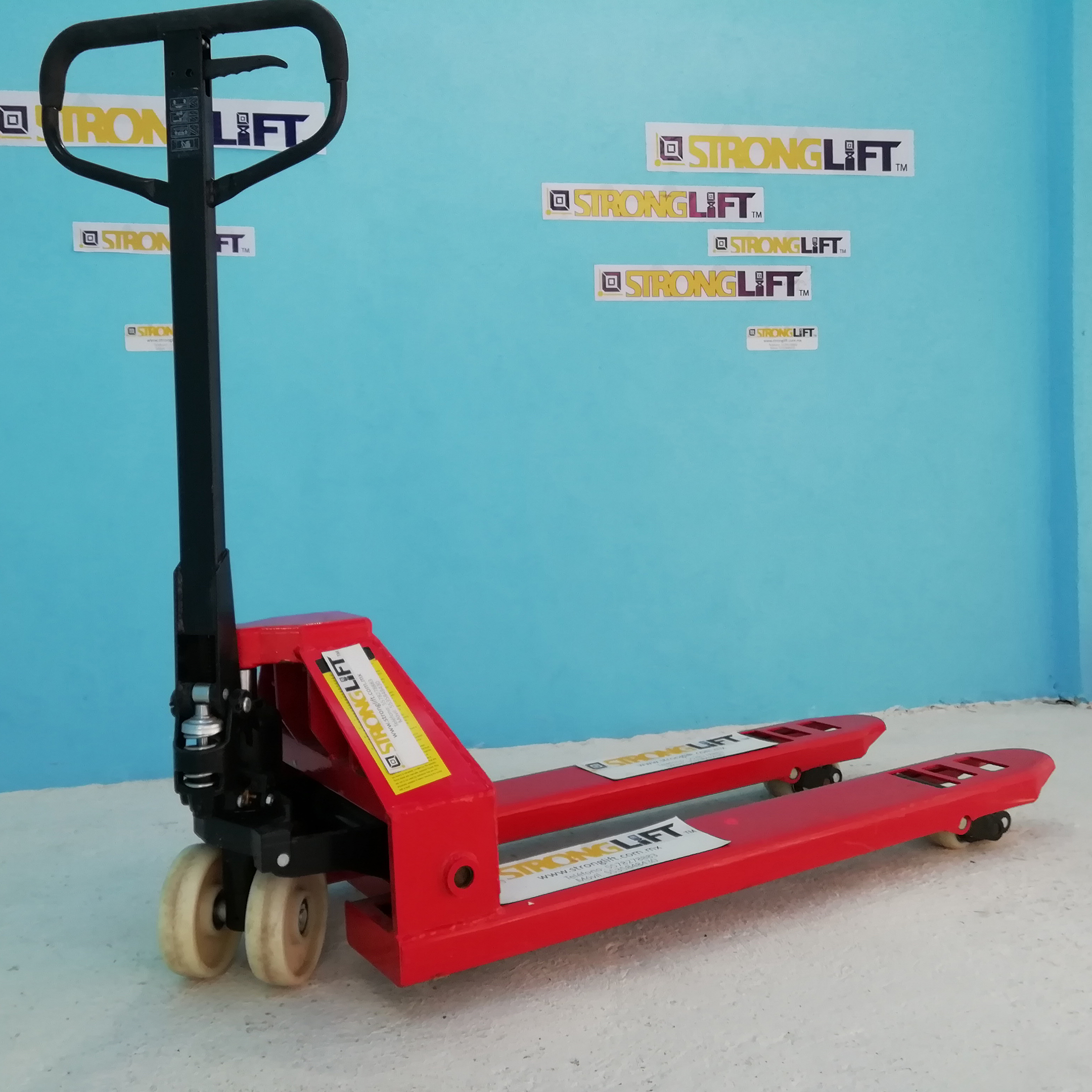 Patín Hidráulico para 5 ton. angosto, horquillas reforzadas 48”x20.5” x 3” x 8” de levante ruedas de 7”x2” y tamden 3” x 2 3/16” hidráulico antigoteo control manual de 3 posiciones radio de giro 180°