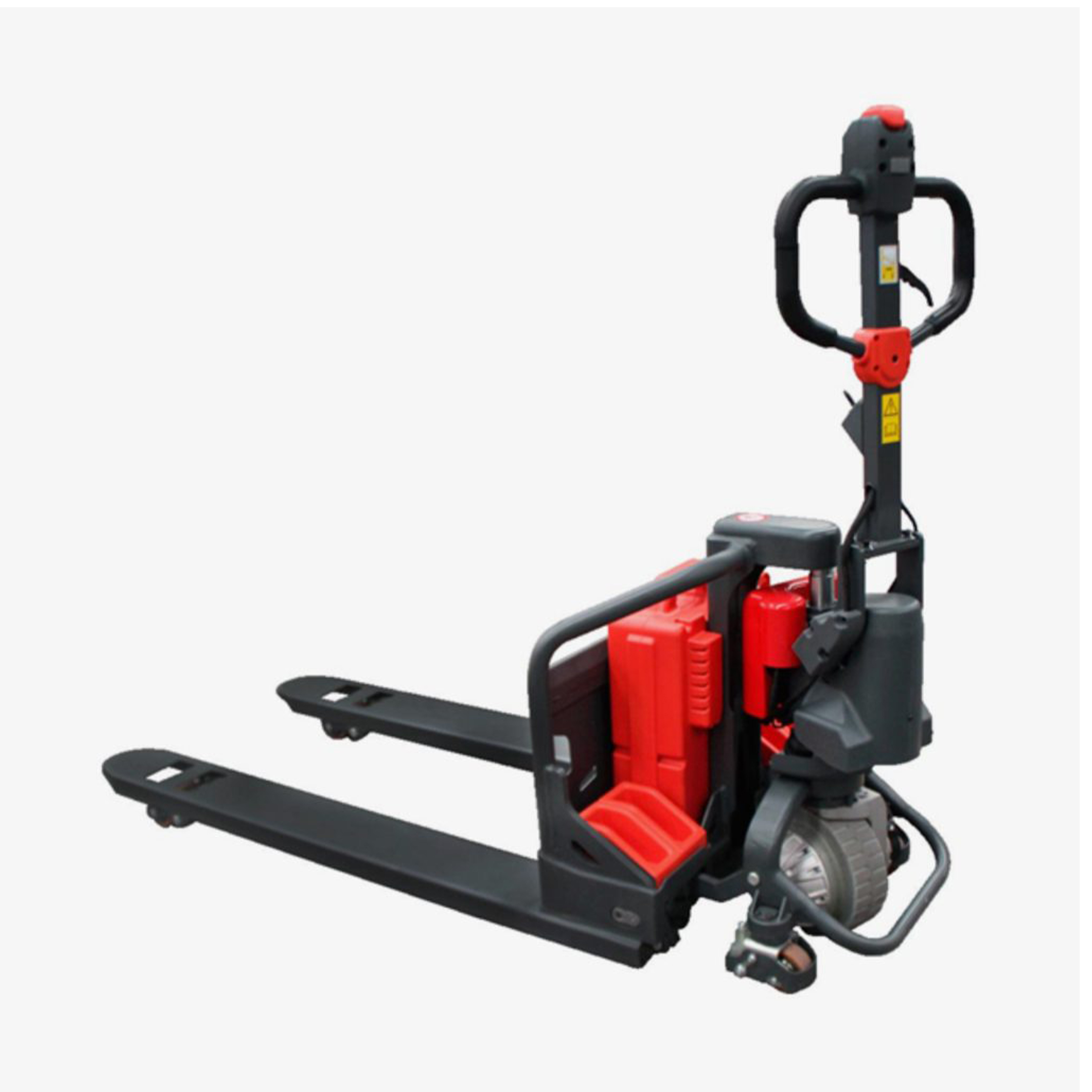 Patin electrico hombre caminando 1.8 toneladas de capacidad horquillas reforzadas 27”x 48” x 3” x 8” de levante ruedas de 7”x2” y tamden 3” x 2 3/16” hidráulico antigoteo control manual de 3 posiciones radio de giro 180°